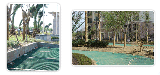 植草格提供超過95%的植草面積,完全的綠化效果,可以吸音、吸震,明顯提升了環境的品質與品味。(参考:混凝土植草磚只有30%空隙)
